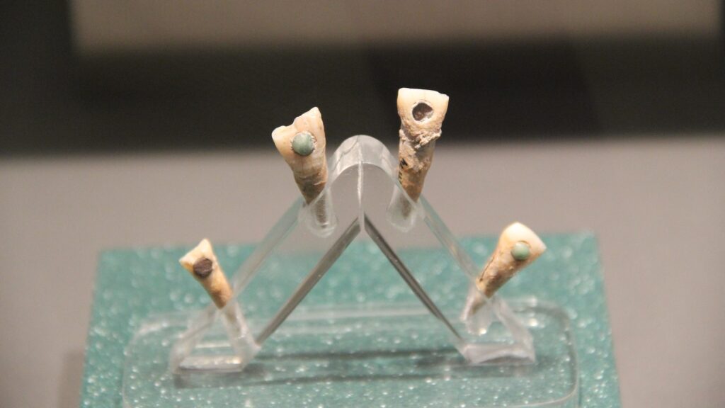 One of the decorated teeth was an upper central left incisor — one of the upper front teeth — and another was a right upper canine. The third tooth was a lower incisor. It’s unknown if they all came from a single child.