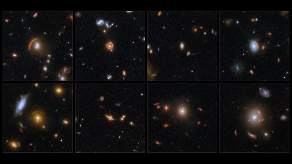 These spectacular new deep-field galaxy images come from a project called COSMOS-Web, one of the largest observing programs carried out with JWST. Scientists spent 255 hours pointing the telescope at more than 42,000 galaxies and found more than 400 possible examples of Einstein rings. The eight here are some of the most dramatic.