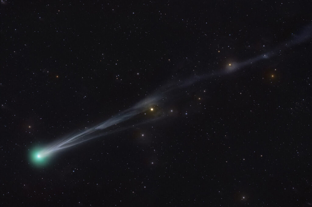 Astrophotographer Julien De Winter, a junior lecturer at the University of Mons in Belgium, photographed Comet Lemmon in late September from Texas, capturing its dramatic emerald glow and long tail.